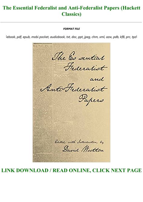 Download The Federalist Hackett Classics Epub online is a convenient and frugal way to read The Federalist Hackett Classics you love right from the comfort of your own home. Yes, there sites where you can get Epub "for free" but the ones listed below are clean from viruses and completely legal to use.
